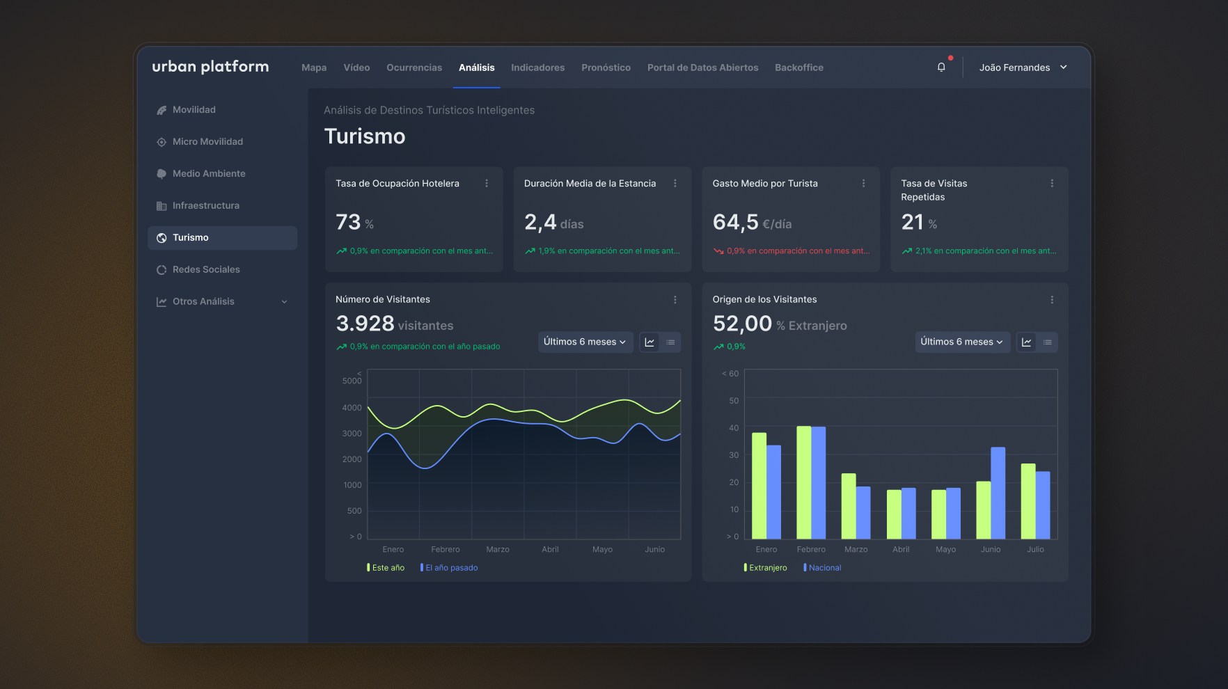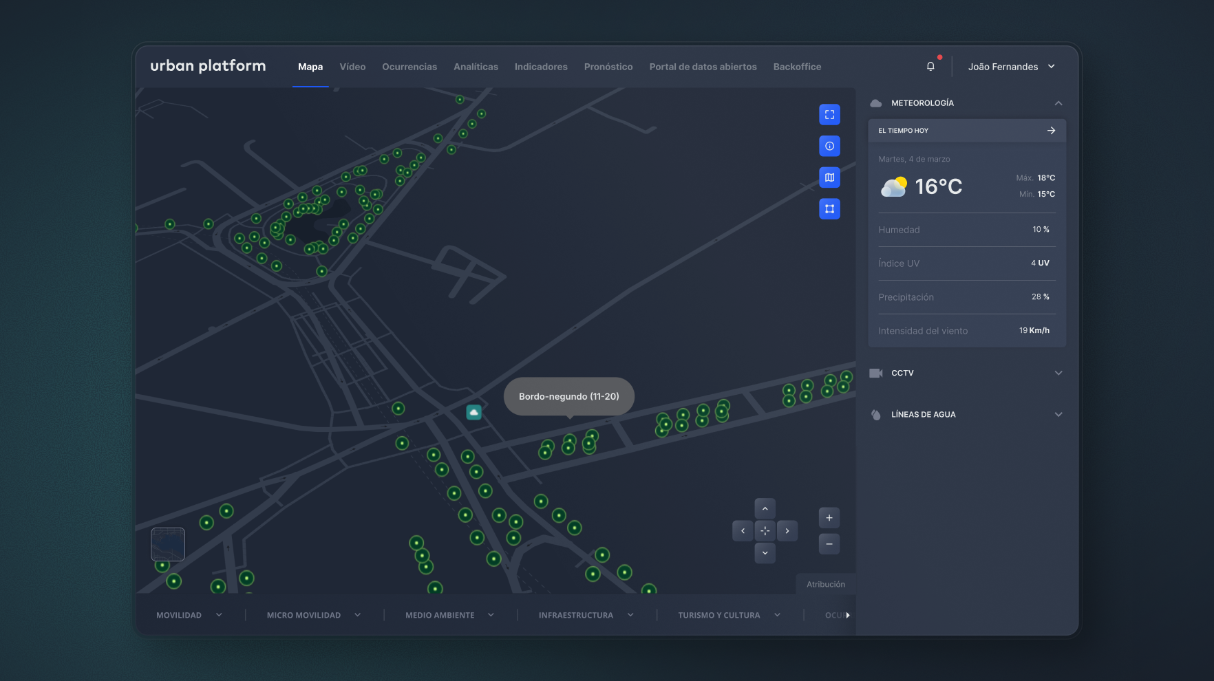 Supervisión inteligente de infraestructuras y servicios de movilidad, promoviendo desplazamientos más eficientes, reducción de emisiones y una mejor planificación urbana.